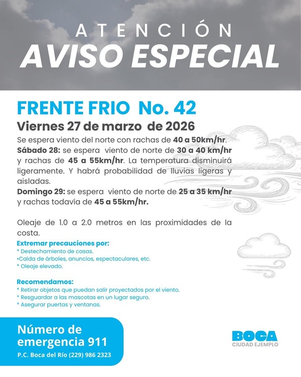 La Presidenta Municipal de Boca del Río, Maryjose Gamboa Torales, a través de la Dirección de Protección Civil Municipal de Boca del Río, comunica que el gobierno municipal se pone…
