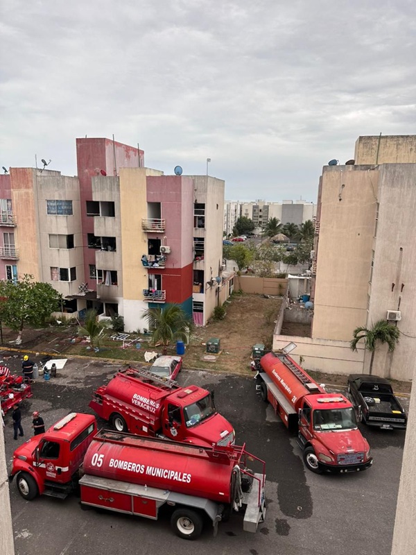 ATIENDEN BOMBEROS Y PC MUNICIPAL DE VERACRUZ INCENDIO TRAS EXPLOSIÓN EN RINCÓN DE PALMA REAL